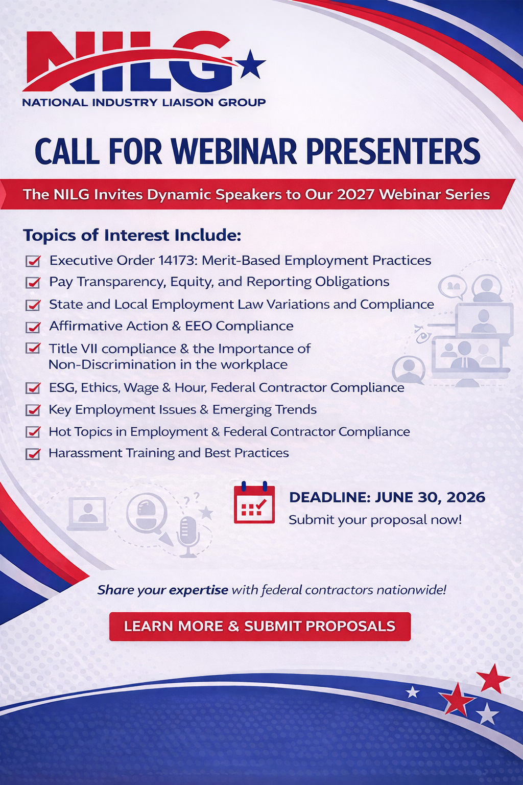 The NILG Board supports 61 ILGs, which are comprised of small, mid-size, and large federal contractors and employers across the country.